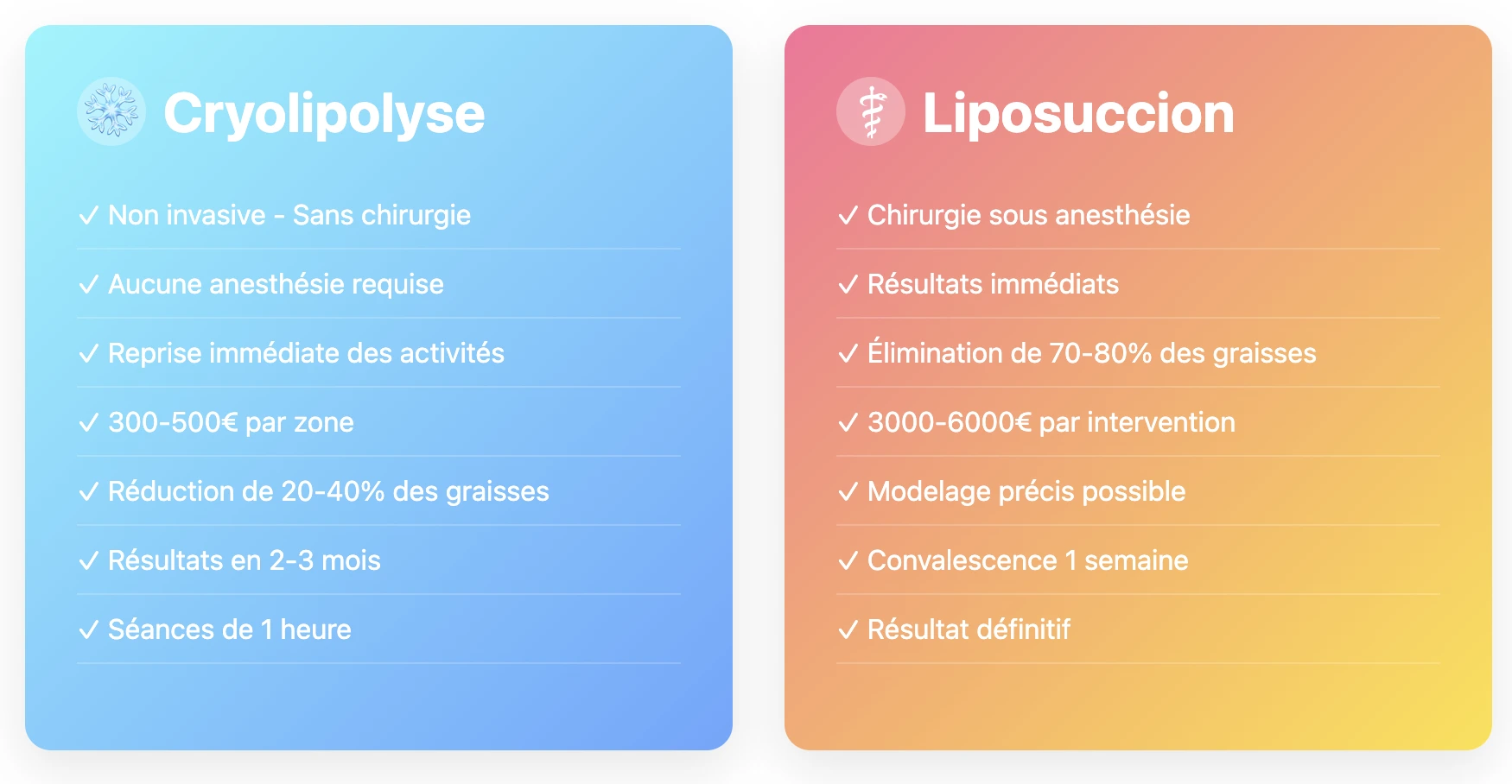 Cryolipolyse vs Liposuccion comparaison de prix